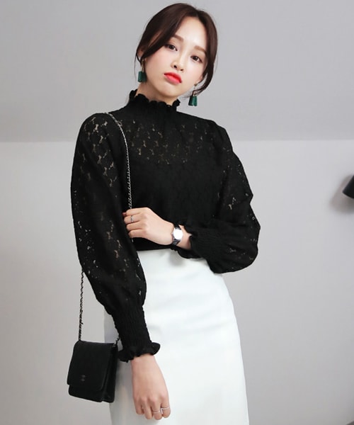 ハイネックで大人っぽく仕上がったレースブラウス!総レースからのぞく肌でほんのり色っぽい演出もしてくれる♪同色のキャミソールとのレイヤードがオススメです♡ ※WEARに記載してある金額と、DHOLIC通販サイトに記載してある金額にシステム都合上、稀に誤差が生じます。正しい金額はDHOLIC通販サイトに記載された金額です。