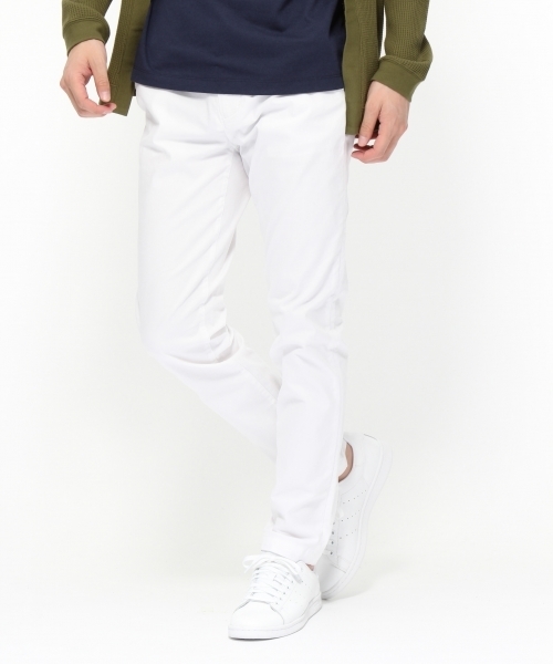 水をはじく、撥水加工 撥水加工をほどこしているので、ちょっとした雨でも気にせず着用いただけます。 ベーシックなチノパンツは、オンオフ問わずにお使いいただける万能アイテム。 ストレッチ機能で、履き心地もバツグンです。