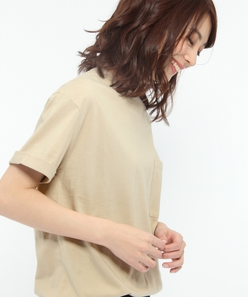 汗ジミ軽減加工をほどこした、ベーシックなポケットTシャツ。生地の表に撥水剤を打つことで、表面への汗ジミを軽減させています。また、素材を微起毛させることで、肌ざわりの良い仕上がりに。ゆったりとしたシルエットとロールアップされた袖がポイントです。