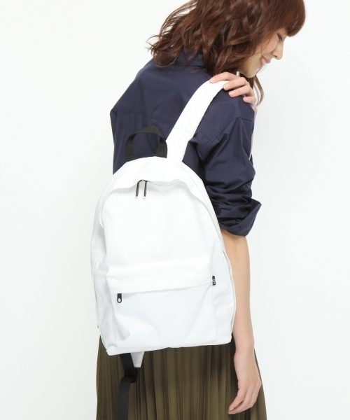 強撚のナイロン糸で織られたキャンバス地に、撥水コーティングをプラスしたリュック。 間口が大きく開き、荷物の出し入れもしやすいデザインです。 内側にはファスナー付きポケットに加え、サイドにペットボトルなどが入れやすいポケットを完備。 男性にも女性にもつかっていただけるユニセックスデザインです。