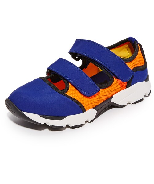 Sporty Marni sneakers in colorblock neoprene and mesh. Velcro straps secure the scalloped top line. Rubber sole. Fabric: Neoprene. Made in Italy.