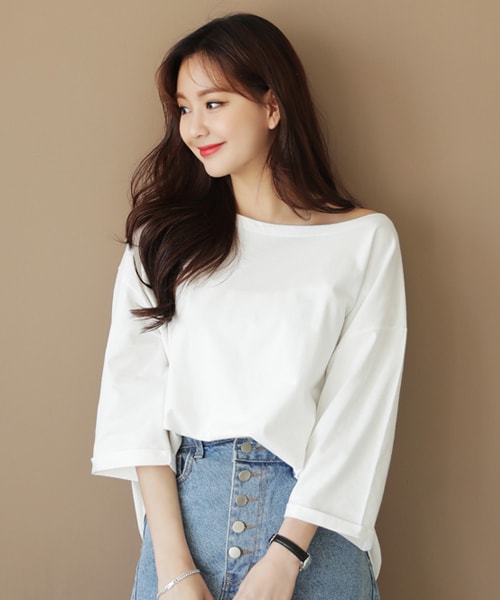 ボートネックでトレンディな肌の露出が楽しめるTシャツ!カジュアルながらもほんのり色っぽいムードに♡シンプルにデニムと合わせるだけでもスタイリングがキマる♪ ※WEARに記載してある金額と、DHOLIC通販サイトに記載してある金額にシステム都合上、稀に誤差が生じます。正しい金額はDHOLIC通販サイトに記載された金額です。