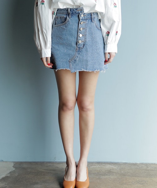 春定番のデニムミニスカート!非対称にデザインされたユニークなフロントが魅力的♡シンプルなTシャツとでもパッと目を惹くスタイリングに!ミニマルなサイジングで小尻効果も期待できる^^ ※WEARに記載してある金額と、DHOLIC通販サイトに記載してある金額にシステム都合上、稀に誤差が生じます。正しい金額はDHOLIC通販サイトに記載された金額です。