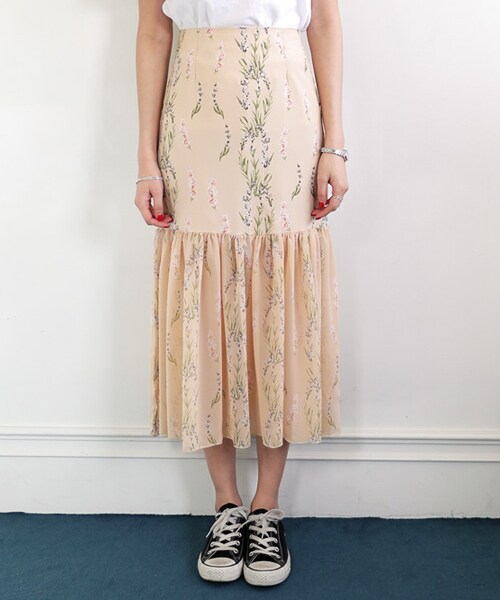 透け感とシフォンのふんわり感で女性らしい上品な雰囲気を演出してくれる花柄スカート♡長めの丈感だから大人っぽく着こなせる♪あえてカジュアルなTシャツやジャケットと合わせるとさらに今年っぽい! ※WEARに記載してある金額と、DHOLIC通販サイトに記載してある金額にシステム都合上、稀に誤差が生じます。正しい金額はDHOLIC通販サイトに記載された金額です。