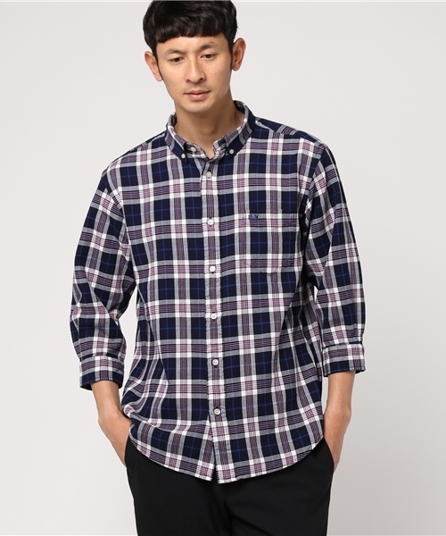 ドビー織で表面変化のある生地を使用した八分袖シャツ。 生地の凹凸感が肌との接触面積を少なくするので、涼しく快適に着用していただけます。洗濯後もしわがあまり気にならないので、イージーケアで使えるのもポイントです。