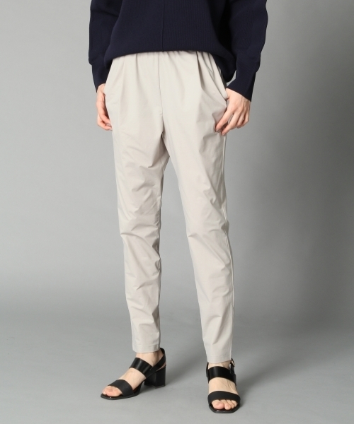 ストレッチの効いたフハク見えするカットソー生地のパンツ。 伸縮性があり動きやすく、ウエストもゴム仕様なので穿き心地抜群です。 超極細糸を高密度に編み上げ、繊細な光沢感と素材の軽量化を実現。 きれいめにも、カジュアルにも着こなせるのでシーンを選ばず着まわし力も◎ 裾にむかってしっかりとシェイプされたシルエットで、すっきりと着こなしていただけます。 ご自宅の洗濯機で洗っていただけるのも嬉しいポイントです。