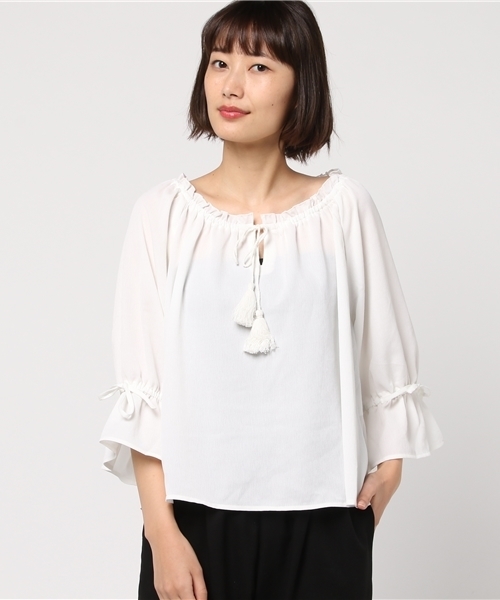 ふんわりエアリーなシルエットのスモックブラウス。袖口をキュッと結んだキャンディスリーブが今っぽくてキュート!1枚で存在感のあるコーデが完成する頼れるアイテム♪※バーコードのついたシールには、サイトのご案内と異なるカラー名が記載されていることもございます。ご了承ください。問い合わせ番号:637-64-8118(店舗)