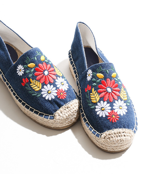 ジュートソールが特徴的なフラワー柄のエスパドリーユ。通気性も抜群で、手軽に季節感を出せるアイテムです。 リラックス感のある素材と足型に沿ったシルエットで履き心地も快適です。裏側にラバーソールを貼り合わせることで、耐久性やグリップ力にも優れたひと品。素足でも履ける嬉しいアイテムとなっております。 お値段も手頃でご自身用は勿論、プレゼントにもオススメです。 M=23cm相当 L =24cm相当 ※履き方・足型等、個人差がございますので、あくまでも参考程度にお考え下さいませ。 ※こちらの商品は着用を繰り返すことにより、甲材生地が伸び足入れが少し緩みます。そのため、通常のサイズ感より若干小さめの作りとなっておりますので、あらかじめご了承くださいませ。