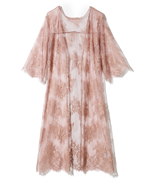 繊細なレースデザインで、エレガントかつセンシュアルに仕上げたロングガウン。 裾広がりのフレアスリーブでトレンドもアピール☆ 背中にギャザーを寄せ、エアリーに揺れるシルエットも素敵です♪ ★裁断の関係で、柄の出方が写真と多少異なる場合があります。