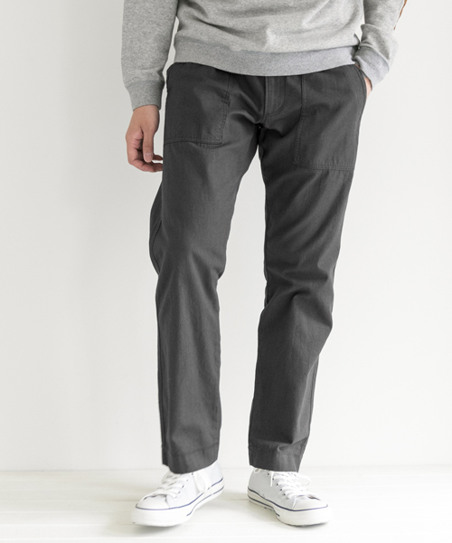 アメリカ テキサス州のブランド「GUNG HO(ガンホー)」にURBAN RESERACH DOORSが別注したベイカーパンツ。同ブランドは、ワークウェアの伝統的なクラシックデザインにこだわり、質実剛健なもの作りで30年以上にわたって支持されている歴史あるブランド。春に最適な綿100%の清涼感のある生地を使用。テーパードの効いた程よい量感の一本。