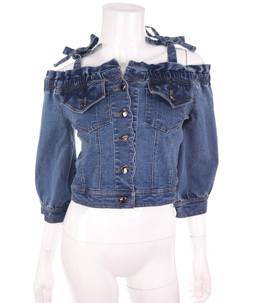 ♡Bobon21 2017S/S New Collection♡ スウィートなオフショルデニムトップスが新登場 デニムジャケットをトップスにアレンジしたデザイン オフショルの肩リボンは好みの長さに調節できるよ フロントはスカラップカット+ぷっくりハートボタン 辛めデニム素材に甘め要素をプラスした甘辛MIXな1着なので、辛めコーデにも甘めコーデにも合わせやすい万能かつおしゃれ感度の高いアイテム