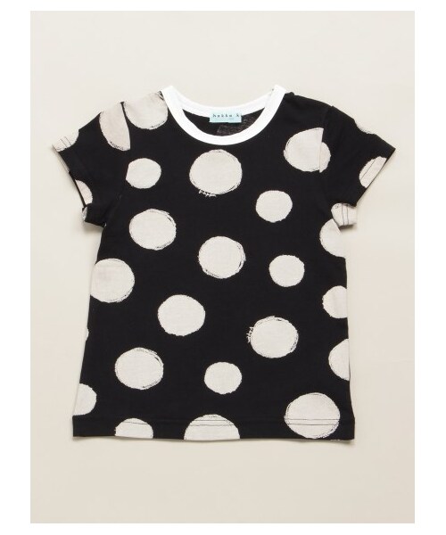 手描き風のドットプリントを散りばめて、POPキュートに仕上げたTシャツ☆使い勝手のよい定番フォルムだから、デイリーユースにぴったりです。ネックラインのパイピングが、さり気ないアクセントに。※画像と柄の位置が異なる場合がございます、ご了承下さい。