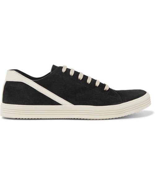 Rick Owens ' 'Geothrasher' sneakers are crafted from black suede with smooth white leather accents. This Italian-made pair is detailed with ecru laces and set on reliable rubber soles finished with subtly serrated edges - a designer signature seen on all the brand's footwear. Fits true to size. Take your normal size Only available in full sizes, go up to the nearest whole size if you take a half size Black suede, white leather Leather linings, rubber soles Lace-up Come with dust bags Made in Italy