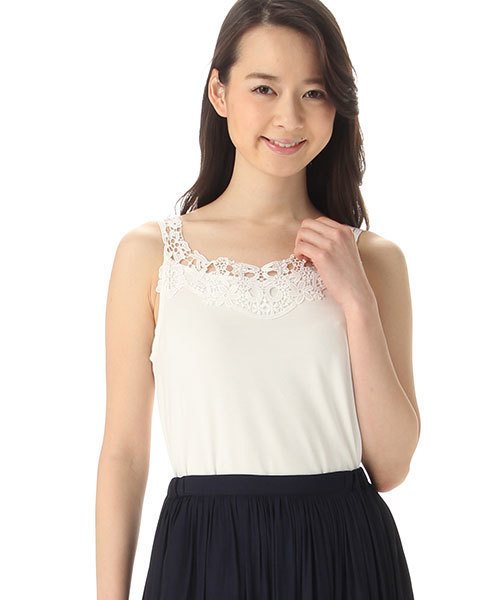 重ね着コーデのアクセントになるレースタンクトップ。 汗をかいても、日差しが強くても快適に過ごせる機能性をうれしい! UVカット:紫外線の透過を緩和します。 吸水速乾:汗を素早く吸収・乾燥します。