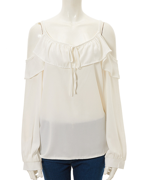 女子力勝負で視線を奪うシーズンブラウス 着用するだけで女性っぽさをアピールすることができる、オープンショルダーのトップスです。リボンやフリルのディテールも、レディなムードメイクに最適なアクセントに。インナーに、シンプルなカットソーをレイヤードしてもOKです。