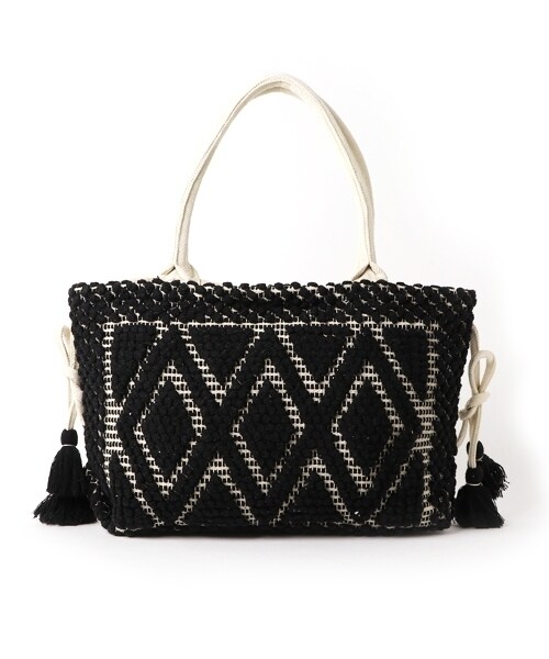 特徴的なダイヤ柄が目を惹くインド製のジャガードバッグ絨毯のようなポコポコとした凹凸感のある織り柄が特徴的なひと品。サイドに付いた紐先には大ぶりのタッセルを配し、エスニックな雰囲気とボディに負けないインパクトをプラスしました。小物を入れるのに便利な内ポケット付きで、広めのマチも嬉しいポイント。存在感を放つルックスは、着こなしのアクセントとしても活躍してくれます。ファッション性を重視した製品