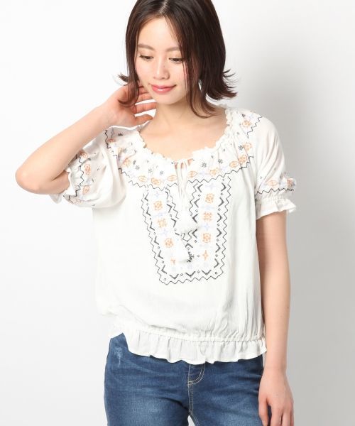 人気のシシュウブラウスが半袖になって登場です!!そのままきても可愛く、オフショルとしてきてもさらに今年らしく着こなしを楽しめます!!カラフルな刺繍がこれからくる夏にもぴったりです。ワイドシルエットのボトムスとの相性◎