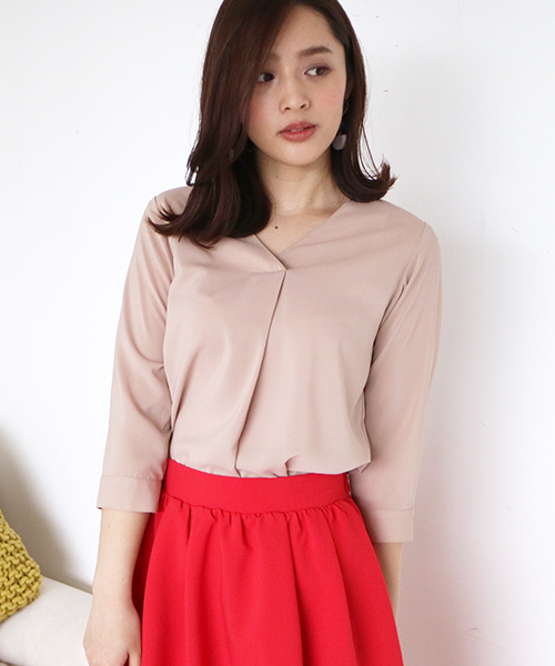 通勤・休日も頼れるタックプリーツブラウス!Vネックに縦にタックプリーツが施され、程よいゆとりのあるフォルムが、今年らしいベーシックさを発揮するデザイン。七分袖なので、今から長く着れる万能さ、パンツstyleでキレイめに、スカートstyleでフェミニンに、爽やかさを添えて演出で着ます。