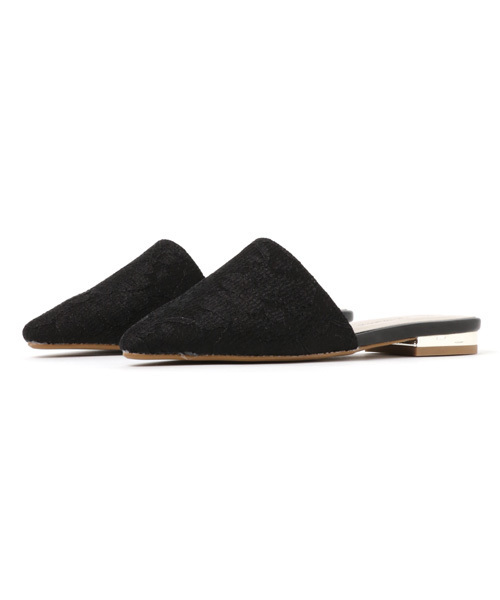夏におすすめな浅目の履き口のスリッパは全色素材違いで展開。他にはないレースやキャンバス素材、トロピカル柄で普段のコーデにさらっと合わせるだけでこなれた印象に。ヒールをゴールドにすることでさりげなく足元にアクセントをプラス。 【オススメPOINT】 ◇夏にオススメ!スリッパデザイン☆ ◇細めのポインテッドトゥでレディな印象に
