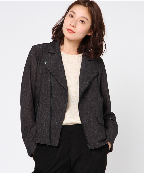 『トレンドのライダーズを、最新の高機能マテリアルで快適に』 国内外の名だたるブランドに先進的なマテリアルを供給している名門テキスタイルメーカー、小松精練の高機能素材「クールドッツ」で仕立てたダブルのライダーズジャケットです。 生地全面にわたる微細な通気孔が不快な蒸れを軽減し、常にドライで爽快な肌触りを実感できるクールドッツは、軽量なうえにストレッチ性や速乾性にも優れ、その着心地は最高にコンフォータブル。さらにシワになりくいのも魅力です。なかでもこちらは、より通気性&伸縮性に富み、一段と豊かな表情を味わえる最新のニットタイプを採用。メッシュジャージーにも似たスポーティな風合いを楽しめる一方、独特のムラ感を演出した全面プリント、そしてラペル&ポケットのカッパーボタンと相まって遠目ではデニムのようにも見えるため、ハイテク然としたルックスではなく、手持ちのベーシックアイテムとも合わせやすいのがポイントです。 『春アウターとしてはもちろん、セットアップでより今年らしく』 ダブルのライダーズジャケットは、男女を問わずリバイバルしている旬のアイテム。なかでもニット素材の一着であれば、本格レザーライダーズに臆してしまうビギナーでもブルゾン感覚で気軽に羽織れます。春のメインアウターとしてはもちろん、今年らしいビッグシルエットのスプリングコートの中にレイヤードすれば、ウンと上級な印象に。また同時リリースの共地のイージーパンツと合わせて、セットアップで着こなすのもオススメ。カジュアルなセットアップスタイルは今シーズンの大本命トレンドであり、上下の組み合わせを迷うことなくオシャレ感を高められるので、ぜひともトライを!