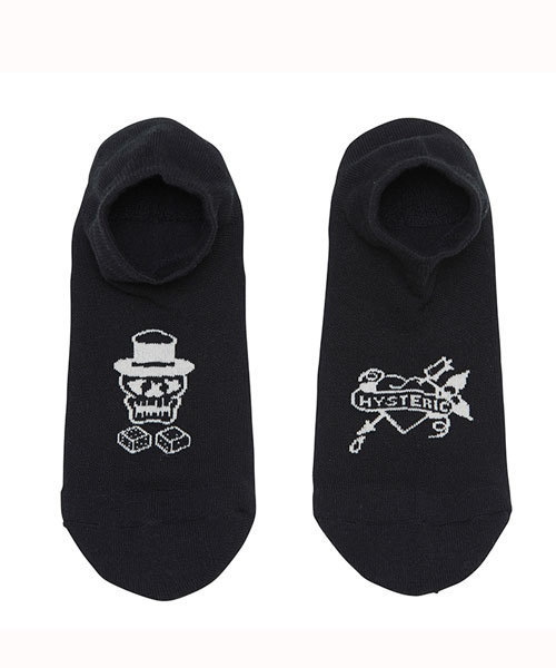 『吸水速乾、爽やかでドライタッチな風合いと断熱性が特徴の機能性スニーカーソックス』 薄手のアンクル丈スニーカーソックスです。 通常よりハイゲージの機械で編み上げているため、柄がきれいに表現されています。オリジナルのタトゥー柄を左右で違う柄に配したこだわりのソックスは、 吸水速乾のドラロン糸を使用してるので履き心地も抜群です。