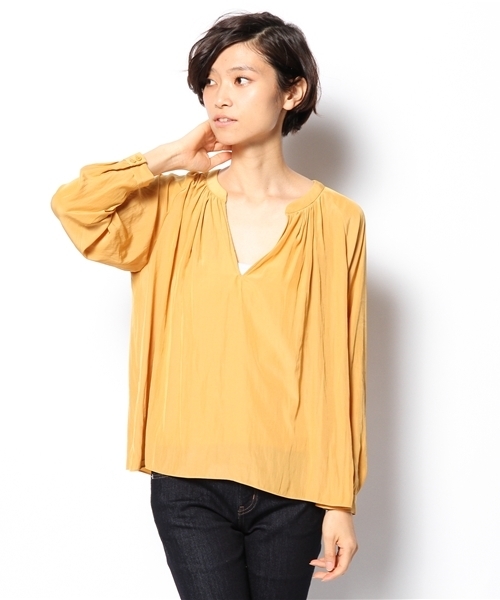 -Adam et Rope' quatre- 「4」という数字は、公平とバランスの数字。 現実世界を想像する基礎となるものは「4」。 喜怒哀楽も「4」。 quatre(カトル)は多忙な毎日を品よく過ごす、クリーンでスマートな女性に向けたON STYLE。 パウダリーな肌触りと軽量感が特徴のデシン素材で仕立てたラグランスリーブブラウス。細やかなギャザーでふんわりシルエットに仕上げた優しい雰囲気が好印象。大人の女性がさらりと着こなせるよう、深めのスキッパータイプの衿ぐりで甘さをセーブしているのもポイントに。 品番:GAH3323(ショップにお問い合わせの際お伝え下さい。) model:H168 B75 W59 H83 着用サイズ:38