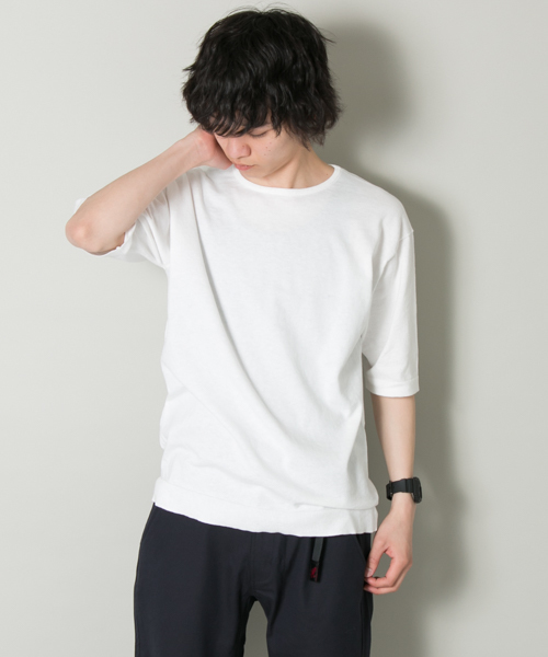 ドロップショルダーのデザインで、ルーズなイメージで着られる、ニットTシャツ。スッキリとした首回りとエアリーな落ち感が持ち味で、夏にも映える爽やかなルックスです。 柔らかく、肌触りがなめらかなコットンソロテックス素材で、ストレスフリーな着心地。カラーバリエーション豊富&コストパフォーマンスも優れているので、思わず色違いで揃えたくなるようなラインナップです。