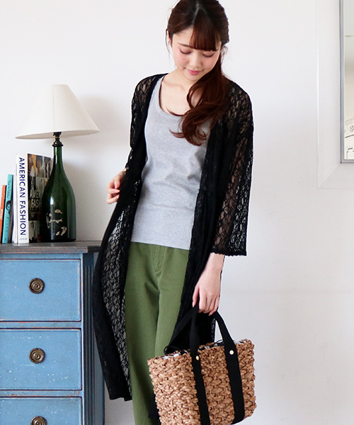 細かい総レースを使用したロングガウンが登場♪いつものスタイリングにさっと羽織るだけでランクアップさせてくれます。デニムやチノパンと合わせてガウンにしても、+ベルト使いでワンピース風に着てもかわいい1着です。