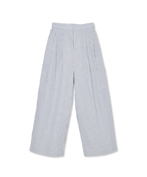 生地にしっかりとした生地を選び、裾にかけてスっと落ちるストレートのシルエットで、足を長く綺麗に見せてくれます。 ウエスト周りにはゴム仕様で更にタックを入れたデザインでウエストインもしやすく、また気になるラインもカバーしてくれます。 無地のBEGはTOPに幅広くアイテムを合わせても旬な着こなしに見せてくれます! ストライプはブラウスを合わせれば女性らしく、デニムジャケット等を羽織って カジュアルからキレイ目まで幅広く活躍してくれる心強い一枚です!