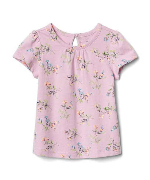 柔らかい厚手のコットンジャージー 半袖、クルーネックにシャーリング入り バックでボタン&ループ開閉、プリントの総柄 *商品タグに記載の価格とサイト上の販売価格が異なる事があります。 ■ Gap ■