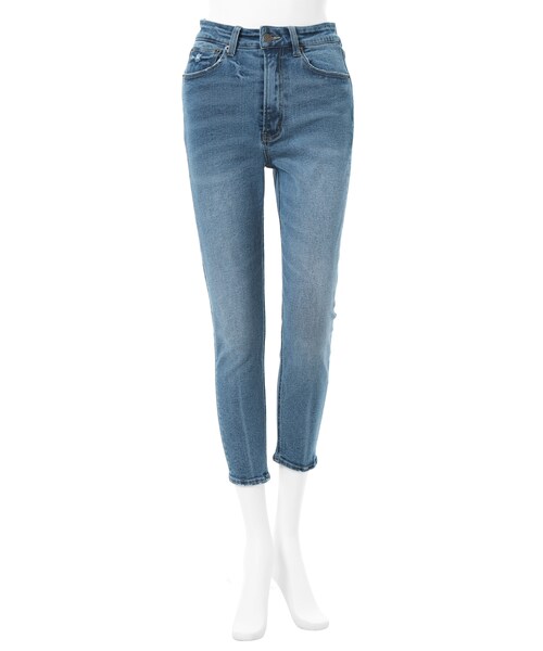 さりげない抜け感を演出するアンクルデニムパンツ。 裾にセンタープレス風のブラスト加工を施し、美脚効果を演出♪ フラットシューズからヒールパンプスまで、自分好みの足元アレンジが試せます☆ ★伸縮性があります。 ★加工の特性上、カラー・サイズが写真・サイズ表示と多少異なる場合があります。