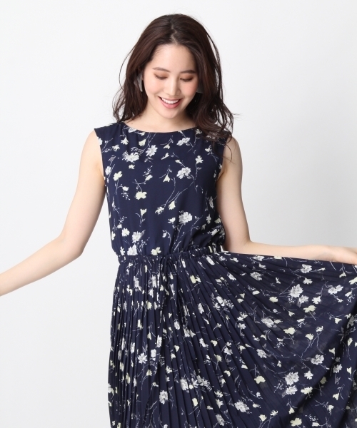 春らしい花柄のミディ丈ワンピースです。 カジュアルアウターと合わせたスタイリングがお勧め! フェミニンなワンピースで1枚でも決まります。 トレンドのプリーツがポイントです。