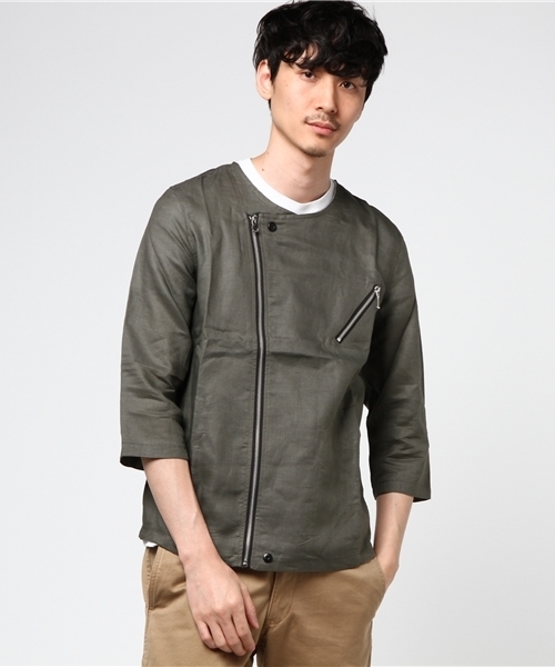 辛口アウターの代表格でもあるライダースが、春夏らしくライトウェイトな素材感で登場♪シャリ感のある麻混素材が心地よく、肌寒い時にさらっと羽織って頂けます!カーディガン感覚で持っておくと便利ですよ!