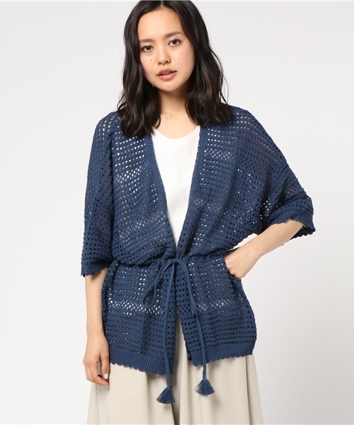 ざっくり羽織って様になる透かし編みのカーディガン。肌触りもさらっとしているため、タンクトップやワンピースなどに羽織って夏本番にも活躍します。 ウエストマークできるリボンにはタッセルを付け、少しフォークロアテイストに仕上げました。