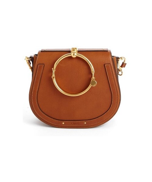 Equestrian-inspired lines and a mix of suede-and-leather panels accentuate the simple, practical and chic silhouette of this compact saddle bag. An articulated Chloe bracelet and circular studs add polished gleam to the day-to-night design, while multiple styling options allow you to carry it by hand, wear it on your shoulder or as a crossbody. Brand: CHLOE. Style Name:Chloe Medium Nile Leather Bracelet Saddle Bag. Style Number: 5320619. Available in stores.