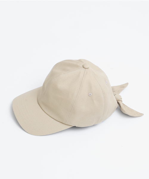 後ろをリボン結びできるパネルキャップ。カジュアルすぎずどこかガーリーな印象なのがポイント。ワイドパンツ、キャンパススニーカーと合わせればトレンドコーデの完成です。