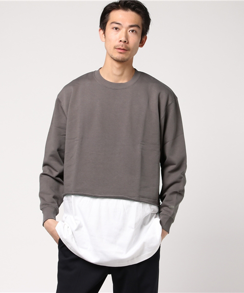 LONG TEE CREW NECK SWEAT クルーネックスウェットのインナー部に、 ロング丈Tシャツをレイヤードした様なデザインのスウェットです。 シンプルなデザインながらも、 スポーティーでハイストリートなアイテムとして楽しめますので、 缶バッジやピンズで自分なりにカスタムなどして コーディネイトの幅が広がります。 オーバーサイズなコーディネイトも楽しめる様にと、 通常のサイズより大きめに作成しておりますので、 全体のサイズ感の確認をお願い致します。