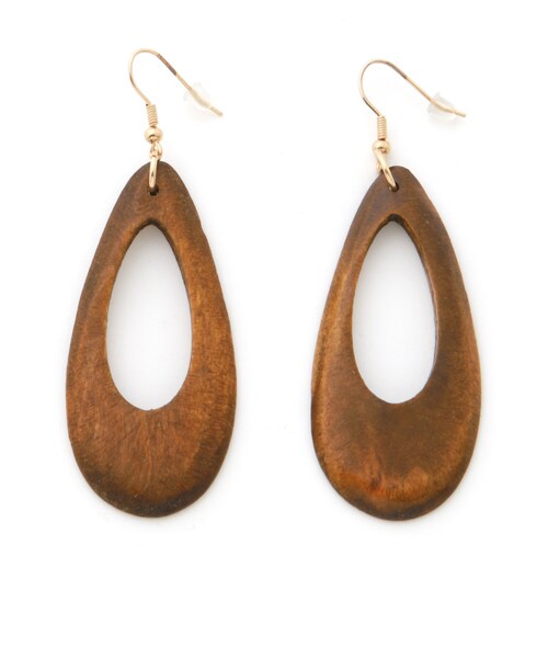 ウッド調の素材を使った、ノスタルジックな雰囲気漂うピアス。 ドロップ型で、中央をくりぬいた個性的なデザインが魅力☆ ナチュラル一辺倒ではない、エッジィなデザインで、アクセントになりそう◎ ★素材の特性上、カラーが、写真と多少異なる場合があります。