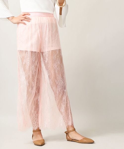 レースデザインで仕上げたパンツ。レース素材で仕上げることで、手軽に着こなしにフェミニンな雰囲気を演出してくれます。 動きを付けた裾口のラインがアクセントになるひと品。ウエストはゴム仕様になっており、リラックスして快適に着用頂けます。 ショート丈トップスと合わせたフェミニンな着こなしは勿論、今季はアクセサリーやスニーカーなど、小物で遊びを効かせたコーディネートもオススメです。 ※ぺチコート付き(ペチコートは本体から取り外し可能です。) シアー / シースルー / レース / 透け感