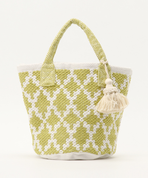 ざっくりとしたラグのような素材感、ネイティブなパターンが特徴のトートバッグ。開放的なシーズンに似合う個性派バッグは、アクセサリー感覚で取り入れてコーディネートのポイントに♪丸底形で見た目以上に荷物を収納できます。