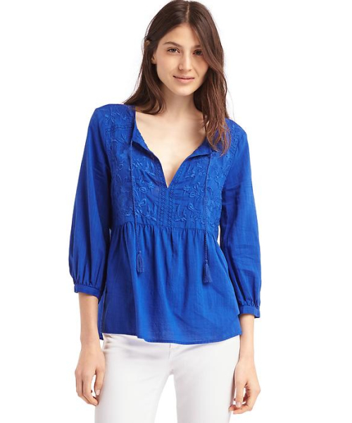 イージーフィットのゆったりめのシルエット 腰丈 モデルの身長は178cm、胸囲は83cm、ウエストは60cm、ヒップは89cmで、GapレギュラーSサイズを着ています。 滑らかなコットンレーヨンの織り地 ゴム仕様のカフス付きの七分袖 タッセルの結び紐が付いたバンド付きスピリットネック 身頃の上部に刺繍のディテール ウエストシームのシャーリングがボリューム感をアップ *商品タグに記載の価格とサイト上の販売価格が異なる事があります。 ■ Gap ■