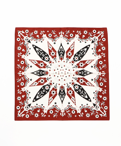 オリジナルのマリンテイストの柄を落とし込んだ大判タイプのバンダナになります。セルビッチを使用していますので、ヴィンテージライクな仕上がりとなっています。また、大判タイプとなりますので、ボトムスのポケットに入れたアクセント使いだけではなく、首にも巻きやすい仕様となっており、用途に合わせ、様々なシーンで活躍してくれるのではないでしょうか。