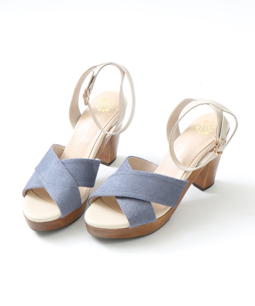 ウッドヒールが涼しげな印象のプラットフォームサンダル。 高さのあるヒールが脚長効果を発揮しつつ、 太ヒールと厚みのあるストームで疲れにくいのが嬉しい。 アッパーのクロスデザインは両サイドに隙間を作り絶妙な抜け感のある仕上がりに。 クロップト丈など露出のあるボトムと合わせてヘルシーに履きこなしたい1足。