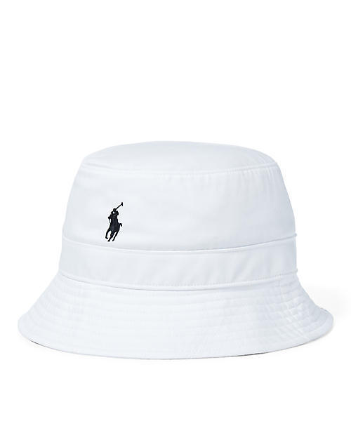 MAPOHGS0J410012 通気性に優れたメッシュの裏地と縫い付けられたスウェットバンドで海岸や海辺の道でもクールでドライに過ごせるコットン混紡のバケツ型ハット。 ・シーム入りのつば ・通気性を補う刺繡ハトメ ・フロントにシグネチャーのポニー刺繍 ・内側にスウェットバンド / メッシュの裏地 ・シェル:コットン58%、ポリエステル42%・スウェットバンド:ナイロン45%、ビスコース33%、リヨセル22% / 裏地:ポリエステル100% ・洗濯機洗い可・輸入素材 ポロ ラルフローレン