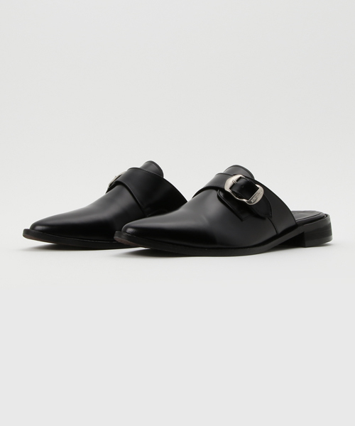 『ドレスシューズの品の良さ&サンダルのヌケ感を両取り』 レディース先行で人気を集め、メンズでも注目のスリッパシューズです。ドレッシーなモンクストラップのアッパーがもたらす品の良さや都会的な雰囲気と、リラックスして履けるサンダルのヌケ感を兼ね備え、さらにシャープなポインテッドトゥによりロックなマインドも漂わせます。またフラットヒールで、気張らず歩きやすい仕上がりに。 大人っぽいキレイめスタイルのハズシとして活用したい一足は、上品な正統派スラックスをはじめ、テーパードシルエットのタックパンツとの組み合わせも今年らしいコンビ。サンドベージュのタイプは柔らかな印象を与えるキメ細かなスエード使い、一方のブラックはスムースなカーフレザーがシックな足元を演出します。 THEE HYSTERIC XXX(ジィ ヒステリック トルプルエックス) HYSTERIC GLAMOURの世界観を高濃度に凝縮し、さらなるラグジュアリーを追求しながら、よりエッジィかつエレガントに昇華させた大人の男性ためのハイエンドライン。こだわりを一段と強く打ち出したロックでアバンギャルドなデザイン、洗練されたドレッシーなシルエット、そしてリュクスなテキスタイルが織りなすコレクションは、着用者の個性をいっそう鮮やかに際立たせます。