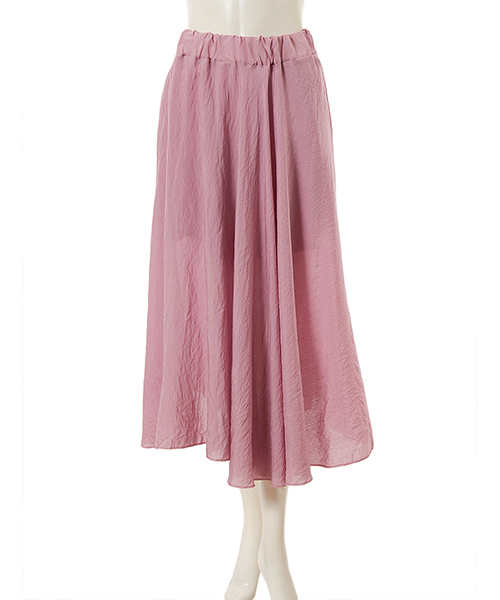 コーディネートの主役アイテムとしてバツグンの存在感 ワッシャー加工を施し、スタイルにこなれ感をプラスするミディ丈スカート。アシンメトリーカットのヘムが、無造な印象を添えグッとセンスを格上げします。動く度にふんわり軽やかに揺らめくルックスは、存在感バツグンです。