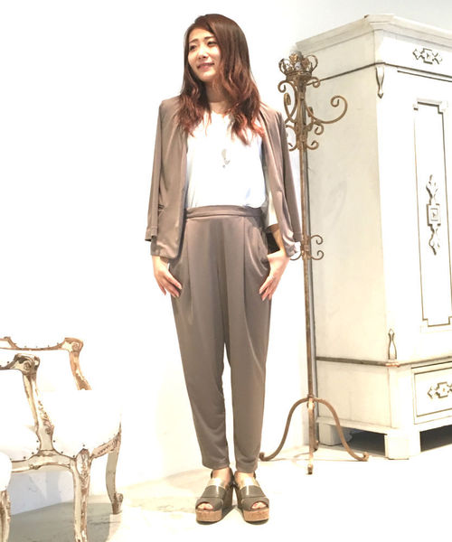 高級素材のトリアセテートを使用してハイゲージの編み機で編み立て、独自のシャリ感とドレープ感がありながら、適度なハリを併せ持ったハイクオリティーな素材です。脚長効果を感じる人気のテーパードパンツ。どんなトップスとも格好良く決まります。カットソー素材で伸縮性も抜群な為、暑い日は裾をアップさせてもOKです。同素材のトップスと合わせてセットアップでも着られます。 ※【853-7198551/ハイゲージスムースブラウス】と合わせてセットアップとしても着用いただけます。 ※【853-7193553/ハイゲージスムースジャケット】と合わせてセットアップとしても着用いただけます。