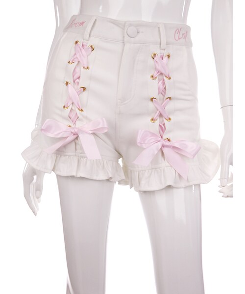 ♡Bobon21 2017S/S New Collection♡ フロントレースがキュートなショーパンが新登場 裾はキュートなフリルデザイン 後ろのヒップポケットはハートだよ ❤白❤レースアップ&刺繍はピンク ❤ピンク❤レースアップ&刺繍は白 ❤黒❤レースアップは黒、刺繍は赤 という絶妙な配色になっているよ これからのシーズン大活躍する1着