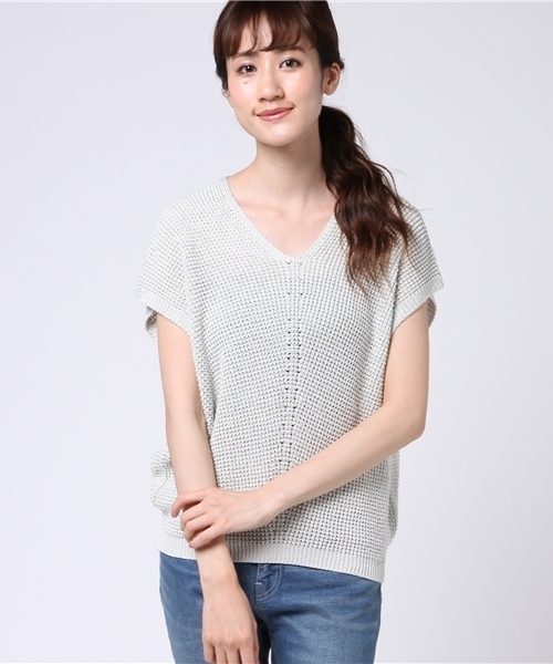 清涼感のある程よくざっくりと編まれたデザインに、ラメがチラッとアクセントになったニット。 バッグの立体感のある丸みなシルエットで、気軽に合わせられる1枚です。 ※末永く愛用頂く為に、アテンションタグ・洗濯ネームを必ずご確認の上、着用又はお取り扱い下さい。