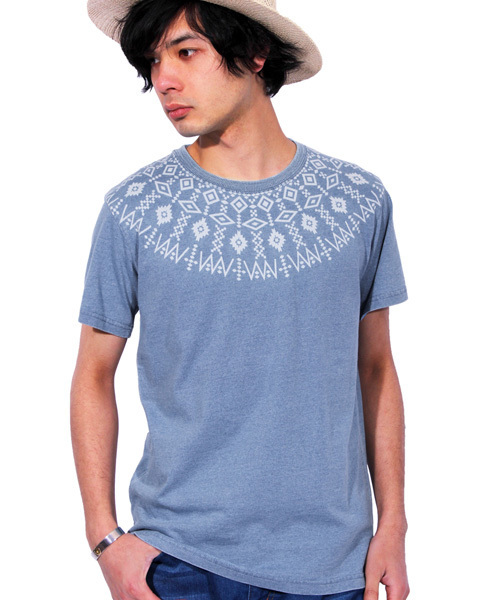 アメカジ系 ストリート系 におすすめ! ネイティブ柄 インディゴ染め 球心 プリント 半袖 Tシャツ カットソー のご紹介です♪昨年も当店で好評だった 球心柄 に新作の ネイティブ 球心 クルーネック 半袖 Tシャツ トップス が入荷しました!! インディゴ染め を施した コットン 生地にネイティブ柄をプリントする事でワンランク上のTシャツに仕上がっております★全体的にややタイトめのサイズ感となっており、 スキニー カーゴ サルエル 等どんなスタイルにも合わせやすいのも嬉しいポイントです!!カラーは コーディネートに合わせやすい 定番人気 ホワイト ブルー インディゴ 全3色をご用意♪♪今期大人気!! ネイティブプリント 球心柄 半袖Tシャツ をお探しの方はこの機会にぜひチェックして下さい!!重さ 約169g素材感 伸縮性…あまり無い 透け感…無い 生地の厚み…普通 着心地…ややタイト 肌触り…やや柔らかい